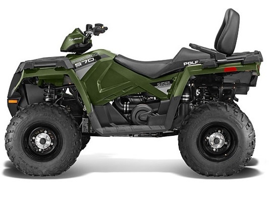 Polaris Sportsman Touring 570 EFI создан на основе суперпопулярного Sportsman 500. Из основных изменений стоит упомянуть одноцилиндровый мотор ProStar 570 с рабочим объемом 567 куб. см. Он гораздо мощнее предшественника, его мощность – 44 л.с. Бензобак также увеличился до 17 литров. Сиденье на Polaris Sportsman Touring 570 EFI установлено узкое, а подножки, напротив, широкие. Это положительно сказалось не только на комфортности, но и на управляемости машины. Возможности перевозки грузов также уделено немало внимания. Багажники могут нести в сумме 120 кг груза, а на прицепе можно перевозить до полутонны.